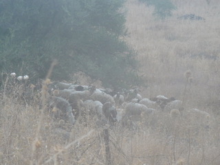 Dry, harsh, landscape, small flock, nomadic shepherd (not in shot)