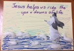 For this I decided to use the image of a surfer who needs to focus to maintain balance and to ride the wave. (It involves me pretending to ride a board and falling off when I am afraid or lose concentration). Then I draw the link with the gospel and the need to keep our focus on Jesus even when everything threatens to overwhelm us.