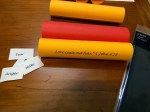 The children will be given tubes with the words: “Perfect love casts out fear” on them. Inside the tubes will be the words: “Hate, Anger, Sadness, Fear”. At the end of the tube will be a tissue “plug”. As they feed the cellophane (water) through the tube they will push the “plug” out and the words will fall out.